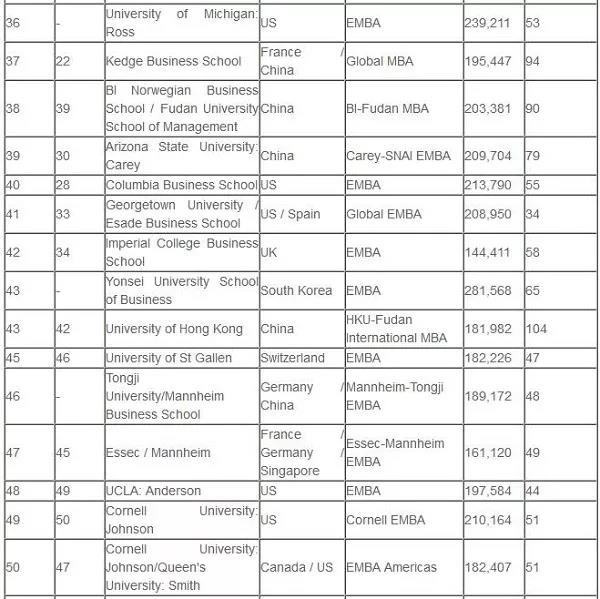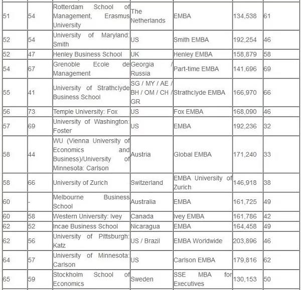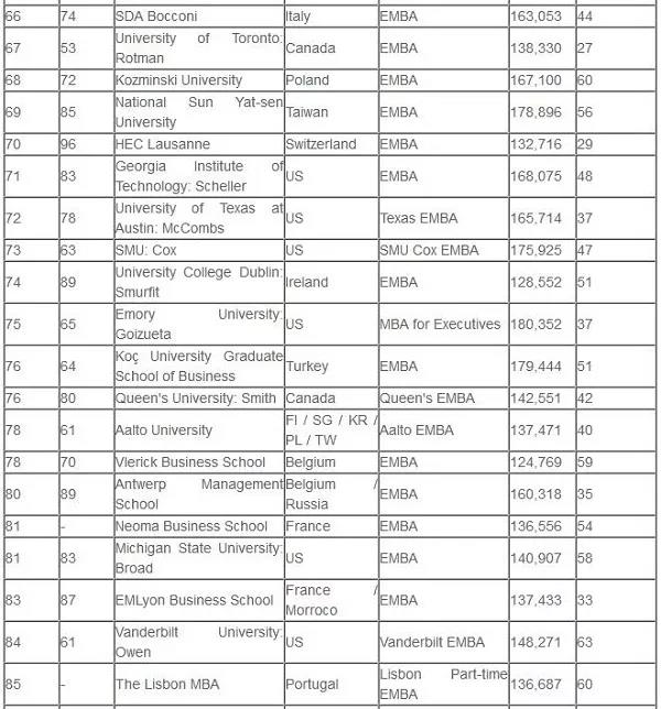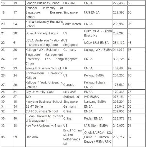 在此之前很多人覺得EMBA學(xué)費貴,報讀價值也有待考量,下面就讓我們一起來看看全球EMBA百強名單!