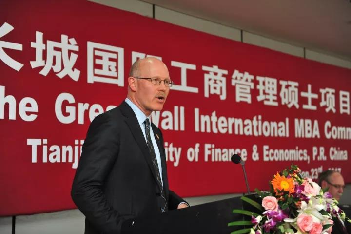 典禮開(kāi)始由西三一大學(xué)MBA主任Murray MacTavish教授致歡迎辭,分別介紹嘉賓,之后西三一大學(xué)商學(xué)院院長(zhǎng)Kevin Sawatsky教授致辭,他表示該項(xiàng)目的定位在于探索高級(jí)國(guó)際化職業(yè)經(jīng)理人的培養(yǎng)之路,打造具有公司理財(cái)專(zhuān)長(zhǎng)的國(guó)際化經(jīng)營(yíng)管理人才是該項(xiàng)目的專(zhuān)業(yè)特色,并高度評(píng)價(jià)了兩校的開(kāi)拓進(jìn)取和精誠(chéng)合作精神,表達(dá)了把長(zhǎng)城國(guó)際MBA項(xiàng)目做大做強(qiáng)的意愿,并對(duì)蒞臨典禮的中外嘉賓表示歡迎和衷心的感謝。隨后典禮中天津財(cái)經(jīng)大學(xué)副校長(zhǎng)張俊喜教授和西三一大學(xué)副校長(zhǎng)Phil Laird教授也分別致辭,對(duì)長(zhǎng)城國(guó)際MBA項(xiàng)目的建設(shè)與發(fā)展提出建議和希望。