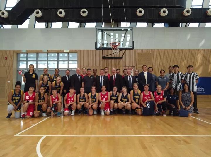 下午,天津財(cái)經(jīng)大學(xué)女籃隊(duì)與加拿大西三一大學(xué)女籃隊(duì)舉行了一場(chǎng)籃球友誼賽。比賽火熱激烈,球在場(chǎng)上飛快的穿梭,所有參賽隊(duì)員奮力拼搏,團(tuán)結(jié)一致?,F(xiàn)場(chǎng)觀眾打氣、喝彩,氣氛熱烈。最后天津財(cái)經(jīng)大學(xué)隊(duì)以微弱的比分,贏得了這場(chǎng)比賽。賽后球員紛紛合影留戀,展現(xiàn)了中加友誼的長(zhǎng)存。
