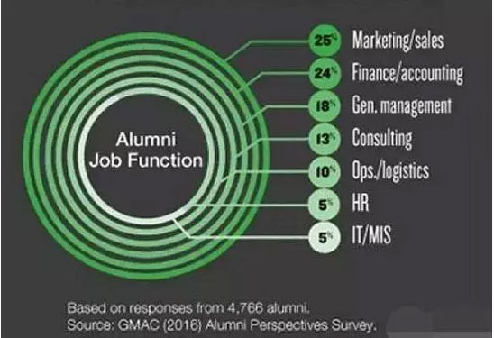 同時(shí),統(tǒng)計(jì)結(jié)果還顯示,MBA校友的就業(yè)范圍趨于廣泛,除金融這一雷打不動(dòng)的輸出方向外,另有七大行業(yè)六大職能吸引MBA畢業(yè)生發(fā)揮光和熱。下面請(qǐng)看具體結(jié)論: