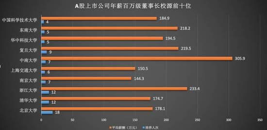 通過數據顯示,北京大學培養(yǎng)的百萬年薪的A股高管共計18位,富豪數量為全國高校之首,清華大學和浙江大學則以12位的高管數量排緊隨其后,而在平均薪酬來看,中南大學以305.9萬元的黑馬之勢在眾高校中遙遙領先。