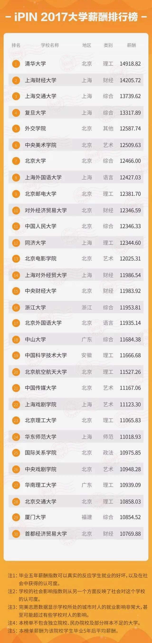 附贈一份薪酬數據榜單(此數據榜單來源于IPIN公司,由iPIN公司依據高校畢業(yè)生五年薪酬數據計算。)