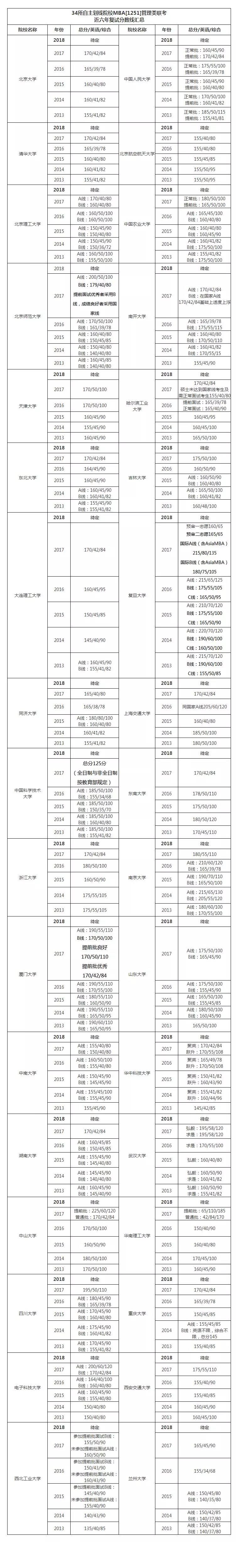 秘籍一:34所自主劃線院校MBA管理類聯(lián)考近六年復(fù)試分數(shù)線匯總