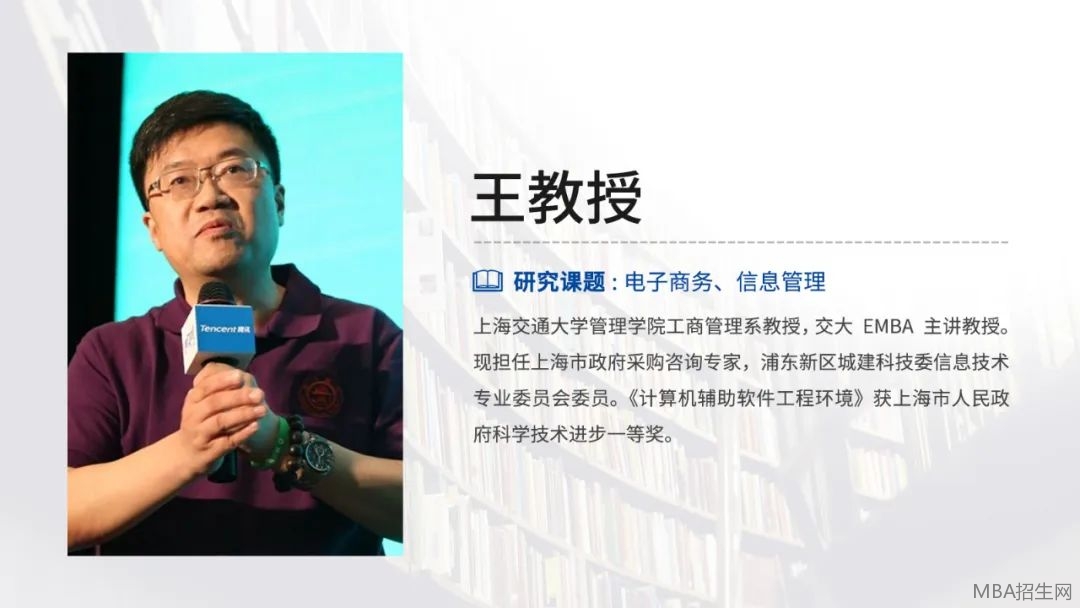 王博士,上海交通大學(xué)管理學(xué)院副教授,上海交大管理學(xué)院EMBA主講教授。國(guó)內(nèi)電子商務(wù)與信息化管理的技術(shù)型與管理型雙重專家。上海交通大學(xué)管理學(xué)院EMBA學(xué)員最受歡迎講師之一,現(xiàn)擔(dān)任上海市政府采購(gòu)咨詢專家,徐匯區(qū)人民政府專家顧問(wèn)委員會(huì)委員,浦東新區(qū)城建科技委信息技術(shù)專業(yè)委員會(huì)委員。善于將復(fù)雜枯燥的信息技術(shù)與信息管理內(nèi)容深入淺出,講課風(fēng)趣,注重應(yīng)用,著有《電子商務(wù)-管理新視角》。