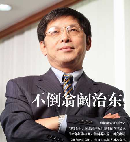 人稱“中國證券教父”,創(chuàng)立申銀證券公司,締造了許多中國證券金融領(lǐng)域的“第一”。創(chuàng)立深創(chuàng)投集團(tuán),闞治東先生在深創(chuàng)投集團(tuán)期間領(lǐng)導(dǎo)的創(chuàng)業(yè)投資項目已有34家在國內(nèi)外證券交易所上市,并出任南方證券股份有限公司總裁等職務(wù)。2005年,創(chuàng)立東方匯富創(chuàng)業(yè)投資管理有限公司,并擔(dān)任董事長,投資了包括華銳風(fēng)電、上海新生源等多個優(yōu)質(zhì)項目,目前總投資增值已經(jīng)超過25.64倍。投資的多個項目預(yù)計陸續(xù)登陸國內(nèi)主板、中小板,香港主板,美國納斯達(dá)克等。