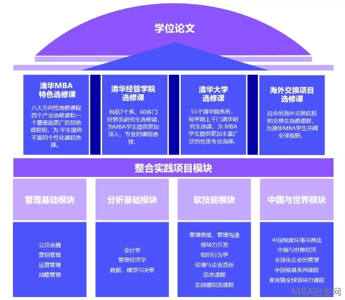 清華MBA新版課程體系由核心課、選修課和學(xué)位論文三個(gè)部分組成。核心課全部為通用性、基礎(chǔ)性課程,能夠?yàn)镸BA學(xué)生后續(xù)的學(xué)習(xí)打下堅(jiān)實(shí)基礎(chǔ)。在核心課后MBA學(xué)生可以根據(jù)個(gè)人的需要選修經(jīng)管學(xué)院、清華大學(xué)和海外院校的課程,進(jìn)行個(gè)性化的學(xué)習(xí)。在最后的學(xué)位論文階段,MBA學(xué)生可以結(jié)合自己的工作實(shí)際和學(xué)習(xí)興趣,完成綜合性、實(shí)踐性的學(xué)位論文,達(dá)到將在校所學(xué)融匯貫通、深入掌握的目的。