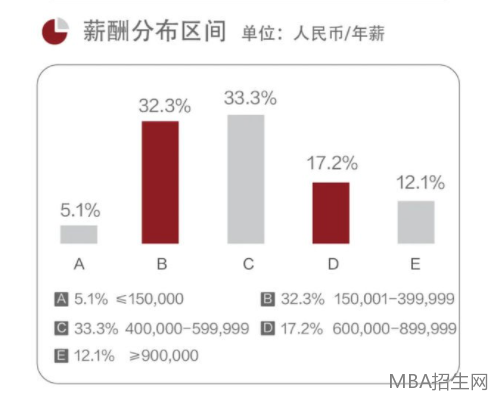 據(jù)不完全統(tǒng)計(jì),中國MBA學(xué)生畢業(yè)后有6.6%的人年薪在100萬上,23.1%的人年薪50萬—100萬,35.5%的人年薪在30萬到50萬,平均薪資漲幅20%以上。