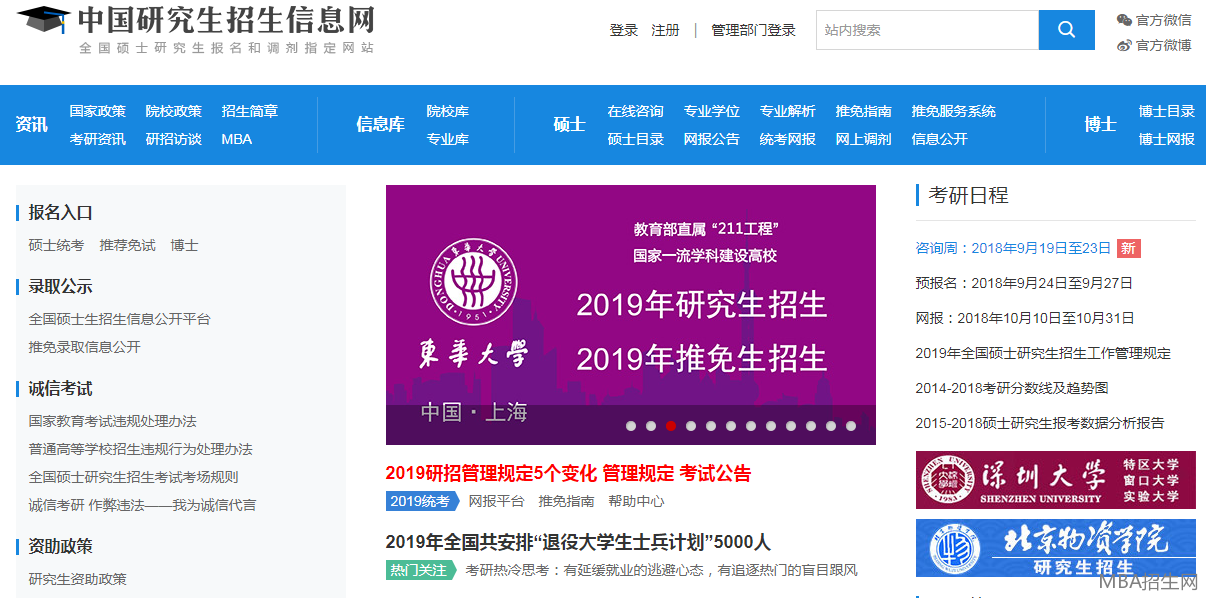預報名是需要在網(wǎng)上進行的,而報名的網(wǎng)站只有一個,就是中國研究生招生信息網(wǎng)(簡稱“研招網(wǎng)”),這個是國家統(tǒng)一規(guī)定的報名網(wǎng)站,只此一家,別無分號!