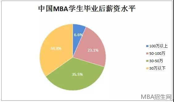 據(jù)不完全統(tǒng)計,中國MBA學(xué)生畢業(yè)后有6.6%的人年薪在100萬以上,23.1%的人年薪50萬到100萬,35.5%的人年薪在30萬到50萬,余下的34.8%的人年薪在30萬以下。近些年,受市場的影響,中國MBA畢業(yè)生漲幅高于歐美。