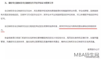 標(biāo)注:《教育部辦公廳關(guān)于統(tǒng)籌全日制和非全日制研究生管理工作的通知》部分截圖。